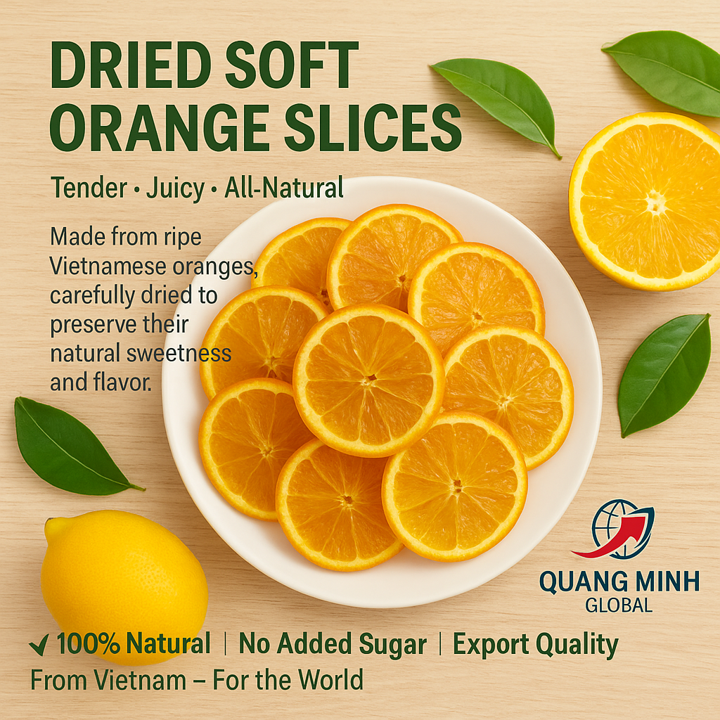 Bright, soft, and naturally sweet — our Dried Soft Orange Slices bring the pure flavor and sunshine of Vietnam’s tropical orchards to your market, crafted for modern, health-focused consumers worldwide.